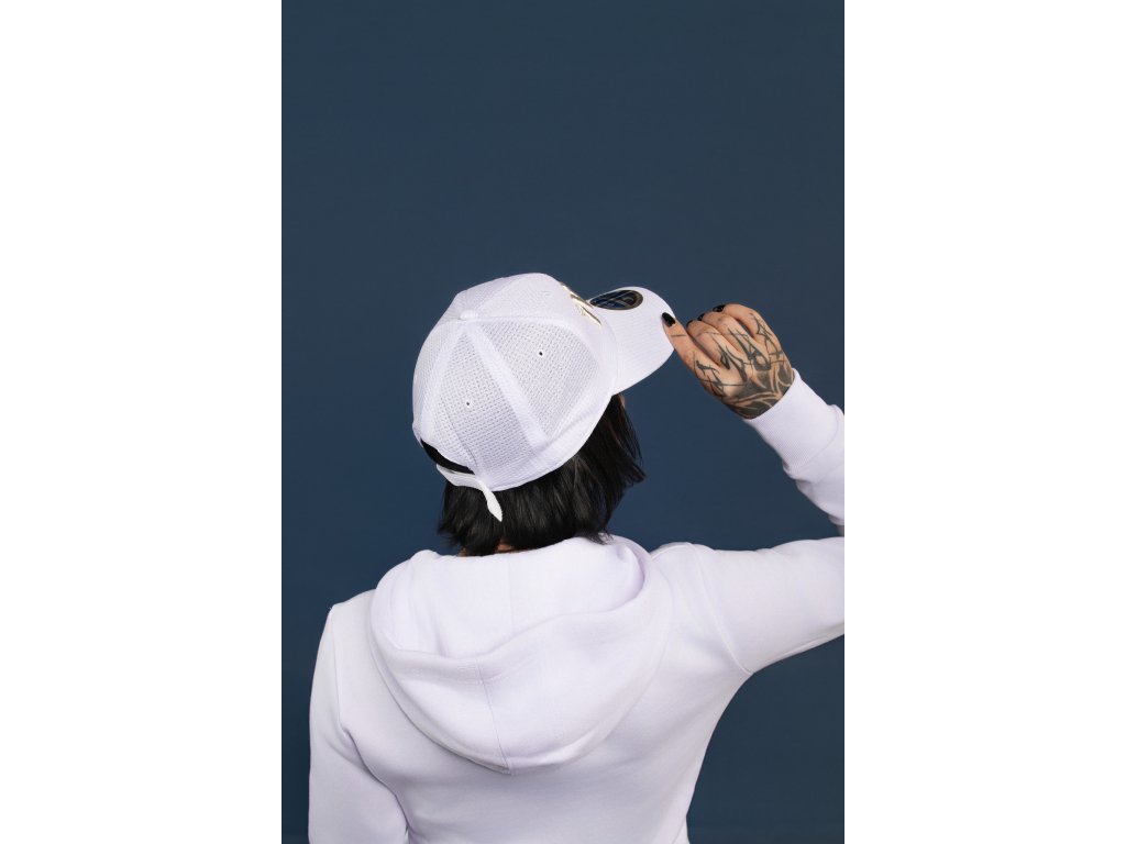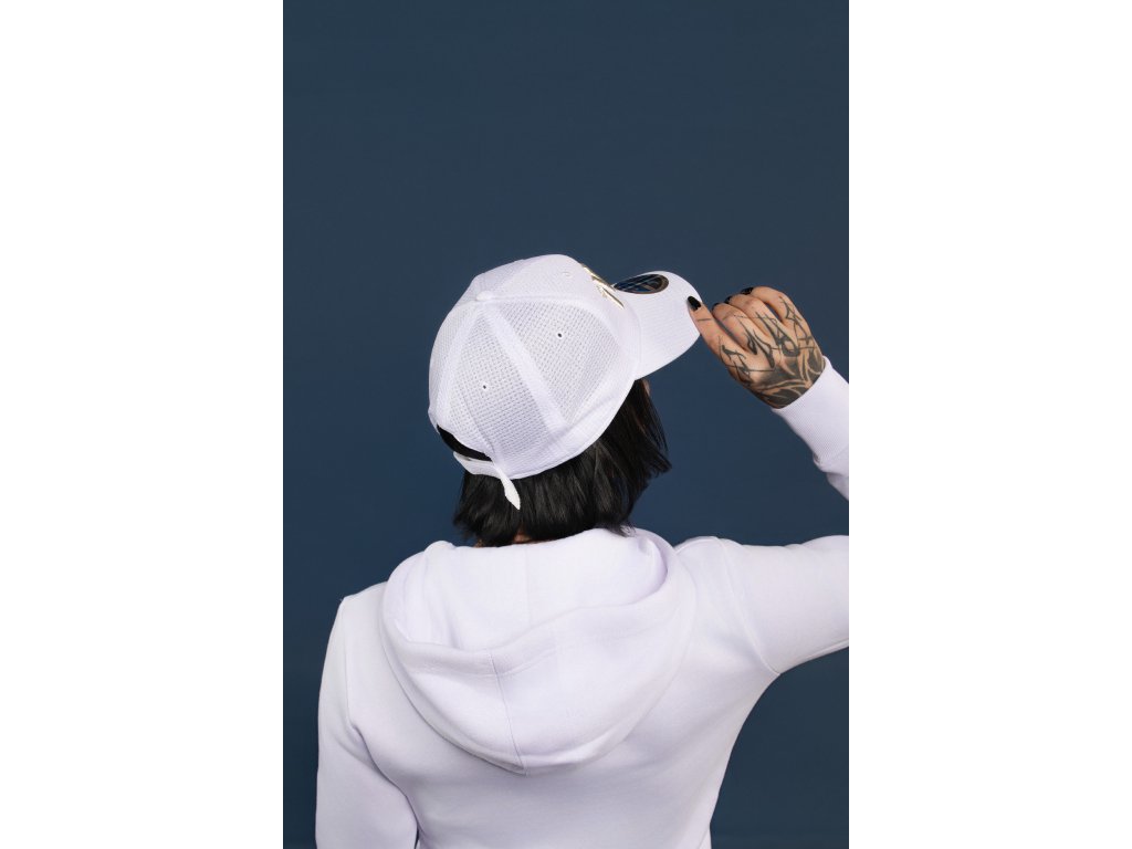 Tato moderní kšiltovka je vyrobena ze 100% elastického polyesteru, který na dotek připomíná bavlnu – příjemný a pohodlný materiál, který drží tvar a zároveň dobře sedí. Má nízký profil, klasicky zahnutý kšilt a měkké, pružné zapínání typu snapback z gumového materiálu, které se pohodlně přizpůsobí každé hlavě.