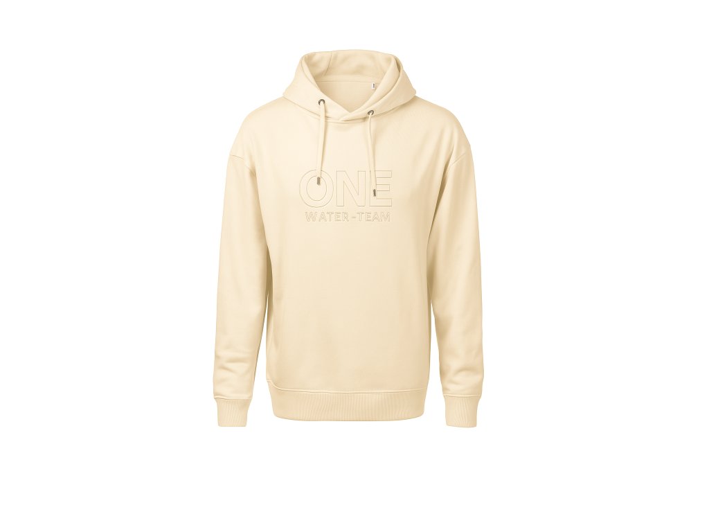 Na hrudi najdete výšivku HRDÉHO loga ONE water - team v barvě mikiny, tedy tón v tónu – decentní prvek, který zdůrazňuje klidnou eleganci celé kolekce.