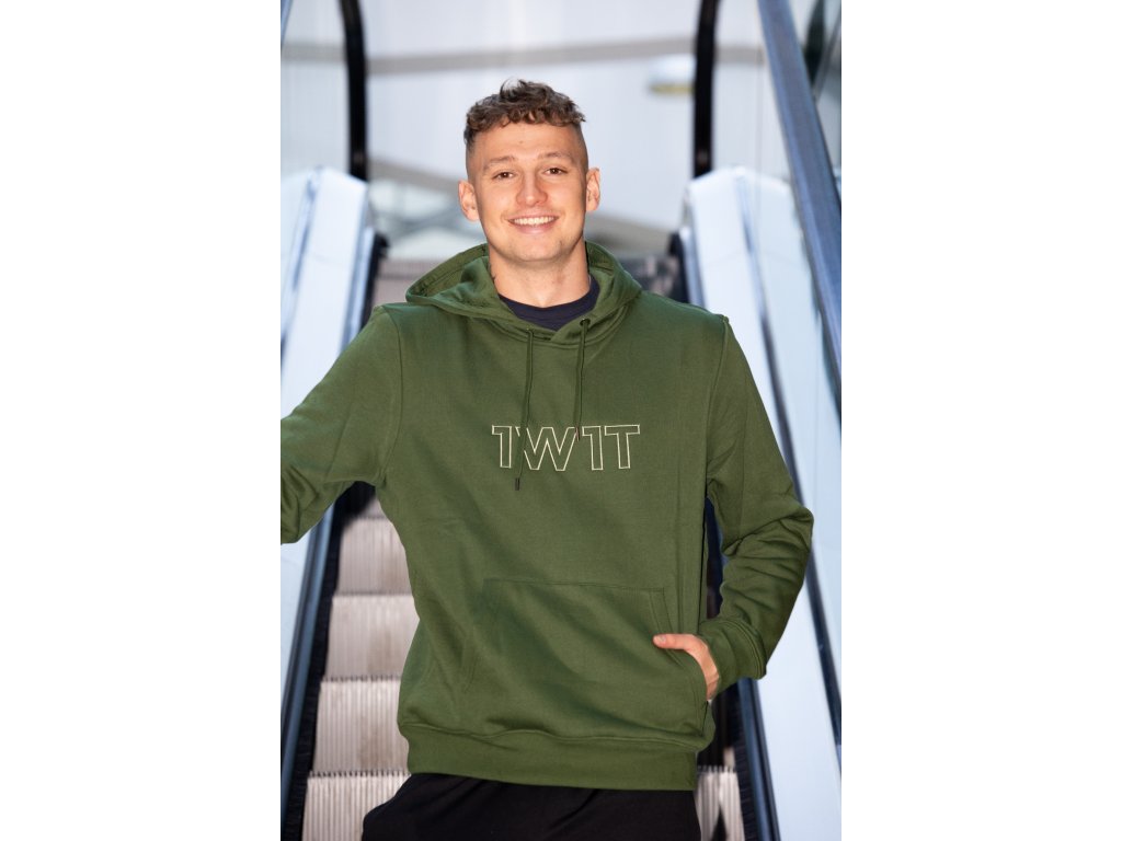 Mikina s kapucí 1W1T – BIG LOGO Edition | Vyšité logo v zelené barvě