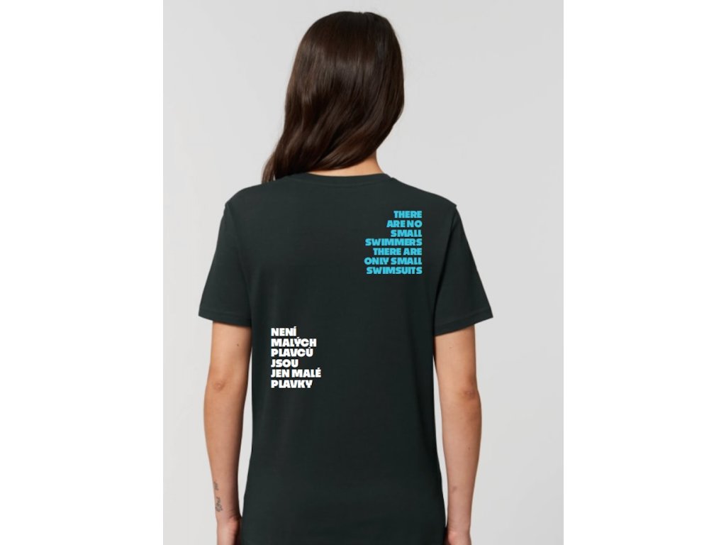 Unisex tričko „NENÍ MALÝCH PLAVCŮ“ vzniklo jako součást speciální kolekce na podporu paraplavání, které je hrdou, plnohodnotnou a respektovanou součástí české plavecké komunity v duchu myšlenky ONE WATER ONE TEAM.