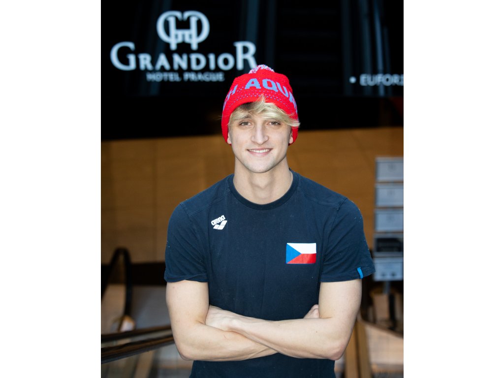 Čepice je univerzální velikosti – skvěle padne ženám, mužům i dětem. Model: Miroslav Knedla, reprezentant ČR v plavání.
